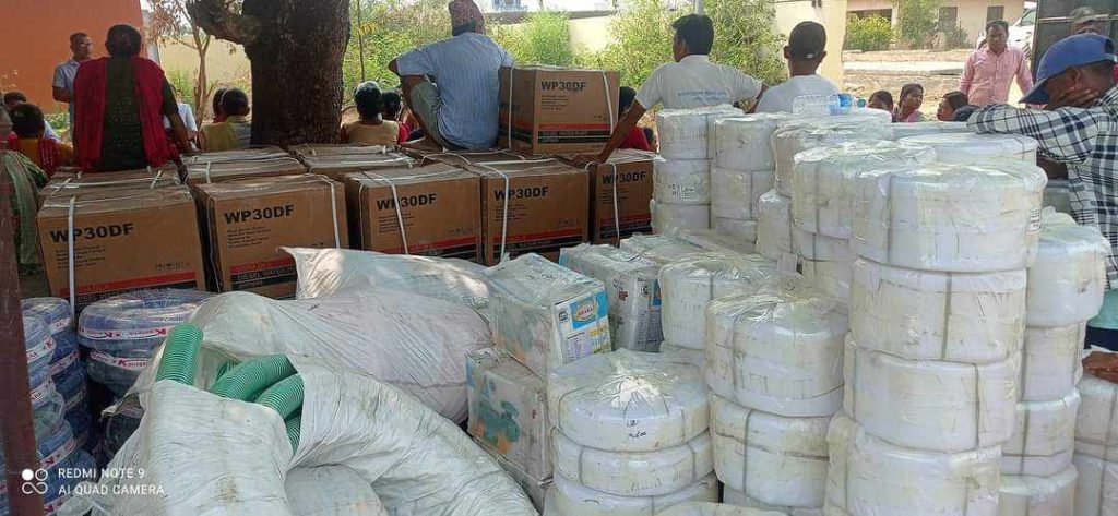 बताउनुभयो ।उत्पादन प्रयाप्त नभए सम्म आम्दानी नबढ्ने भन्दै वडाध्यक्ष थापाले आम्दानी बृद्धि गर्न उत्पादनमा जोडदिनु पर्ने बताउनुभयो । उत्पादन र बजारीकरण भए आर्थिक समृद्धीको दिशामा कार्यक्रम अघि बढ्ने बताउनुभयो। सामाजिक उद्यमी महिला सहकारी संस्था लिमिटेड गढवाद्वारा गठित वडा नम्बर ७ र ५ का महिला कृषक समूहहरुलाई सिचाई सामाग्री वितरण गरिएको हो । कृषि तथा पशुवस्तुको मूल्य श्रृंखलामा आधारित नविनतम विकास परियोजना (IALVC) अन्तर्गत सिचाई सामाग्री वितरण गरिएको गढवा सामाजिक उद्यमी महिला सहकारी संस्था लिमिटेड गढवाका अध्यक्ष शोभा रावत क्षेत्रीले जानकारी दिनुभयो। गढवा गाउँपालिका वडा नम्बर ५ र वडा वडा नम्बर ७ का ५५ जना किसानले आवश्यकताको आधारमा २ इन्चको बोरिङ्ग, पम्प सेट, मोटर, डेलीभरी पाईप, ह्याण्ड पम्प लगाएतको सिचाई उपहार कोष सामाग्री वितरण गरिएको अध्यक्ष रावत क्षेत्रीले जानकारी दिनुभयो। कार्यक्रममा गढवा सामाजिक उद्यमी महिला सहकारी संस्थाका अध्यक्ष शोभा रावत क्षेत्रीको अध्यक्षता तथा गढवा गाउँपालिका अध्यक्ष यमनारायण शर्मा पोख्रेलको प्रमुख आतिथ्य तथा गढवा गाउँपालिका वडा नम्बर ५का वडाध्यक्ष लेख बहादुर थापाको बिशिस्ट आतिथ्यमा सम्पन्न भएको हो। कार्यक्रमको सञ्चालन भिटा परियोजना कार्यक्रमका सामुदायिक सहजकर्ता कैलाश चौधरीले गर्नु भएको थियो ।