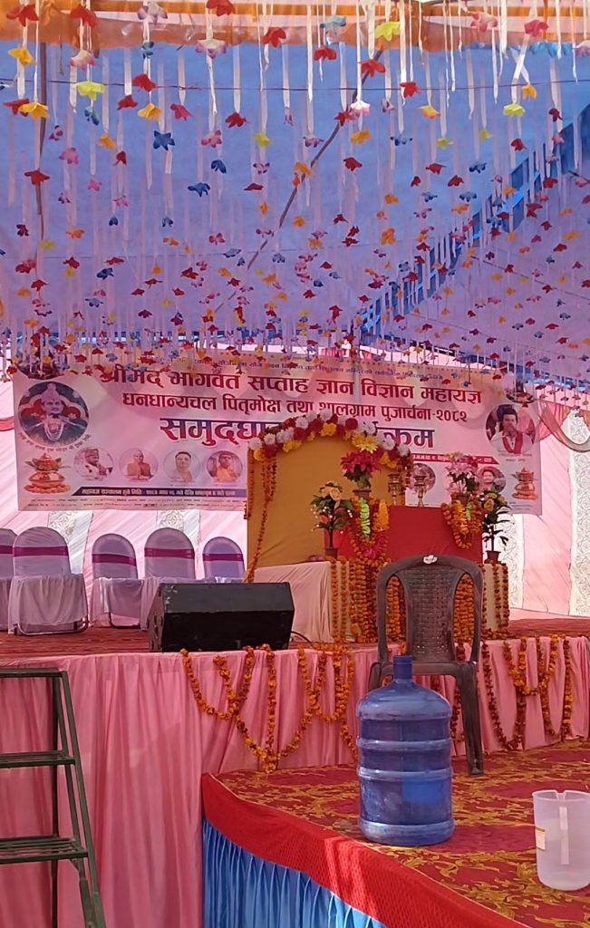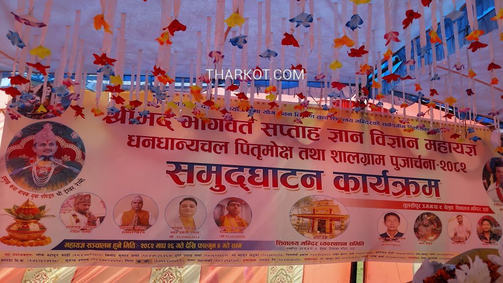 श्रीमद् भागवत सप्ताह ज्ञानविज्ञान महायज्ञ धनधान्यचल पितृमाेक्ष तथा शालग्राम पुजार्चना-२०८२ आजदेखि तुलसीपुरमा सुरुभएकाेछ । श्री शिवालय मन्दिर व्यवस्थापन समिति तुलसीपुर उपमहानगरपालिका -९ वेलुवा, शिवालय मन्दिर, दाङको आयाेजना तथा तुलसीपुर उपमहानगरपालिका ९ नं. वडा कार्यालय, दाङ संरक्षक रहेकाे साे श्रीमद् भागवत सप्ताह ज्ञानविज्ञान महायज्ञ