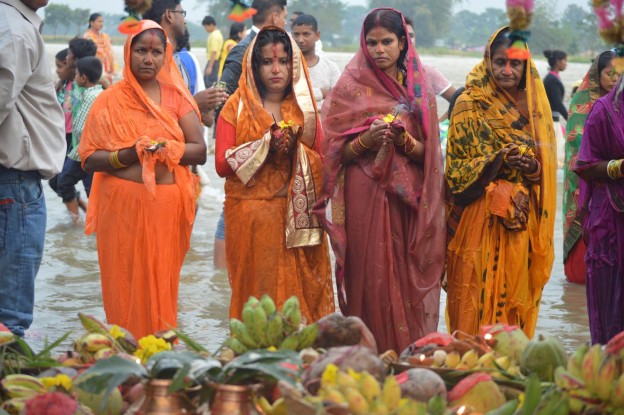 गरिसकेका छन् । त्यसैगरी दोस्रो दिन पञ्चमी तिथिका दिन दिनभरि निराहार व्रत उपासना गरेर राति सक्खर हालेर पकाइएको अरवा चामलको खिरमात्र इष्टदेवलाई चढाएर परिवारजनसहित प्रसादस्वरुप खाने गर्छन् । दोस्रो दिनको यो विधिलाई मिथिलामा ‘खरना’ भनिन्छ । पर्वको मुख्य दिन षष्ठी तिथिका दिन निराहार व्रत बसेर साँझपख पवित्र जलाशयमा बनाइएको घाटमा स्नान गर्दै सूर्यदेवलाई अर्घ दिइन्छ । यसक्रममा ठकुवा, भुसुवा (कसार), अन्य मिष्ठान्न परिकार, केरा, दहीसहितका सामग्री सूर्यलाई देखाइन्छ । यो विधिलाई ‘सझुका अरख’ भनिन्छ ।