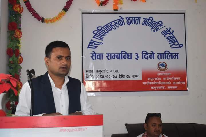 पशु प्राबिधिकहरुको लागि ३ दिने क्षमता अभिबृदि तालिम एक कार्यक्रमका बिच समापन गरिएको छ । पशु अस्पताल एवम पशु सेवा कार्यालयको सहयोग र कपुरकोट गाउपालिकाको आयोजनामा साे तालिम सन्चालन भएको थियो । पशु अस्पतालका डाक्टर जयन्त र नेत्रलाल प्राबिधिक शिक्षालयका डा बालकृष्ण ले प्रशिक्षण दिएकाे साे तालिममा ७ जना पशु प्राबिधिकहरुको सहभागिता रहेको थियो ।