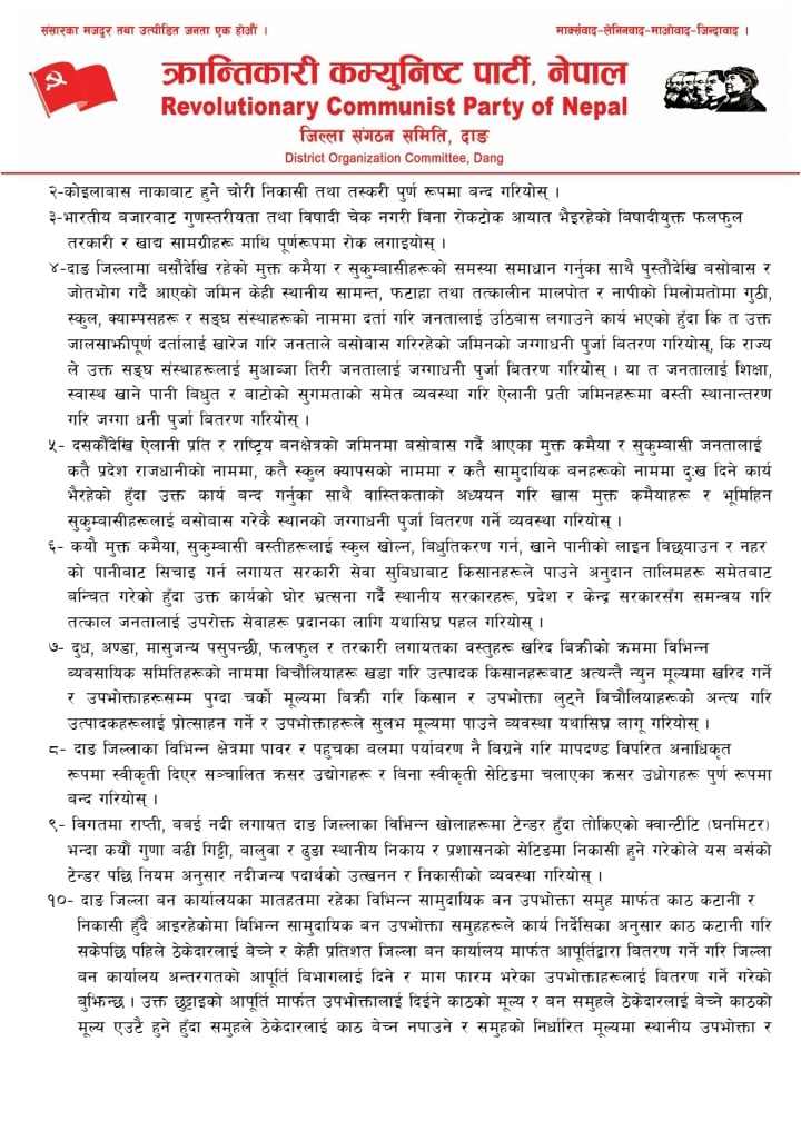 थर्काेट समाचारदातादाङ ६ आश्विनक्रान्तिकारी कम्युनिष्ट पार्टी नेपाल जिल्ला संगठन समिति दाङले शुक्रबार जिल्ला प्रशासन कार्यालय दाङमा ज्ञापन पत्र बुझाएकाे छ । नेपाल जिल्ला संगठन समिति दाङले जिल्ला प्रशासन कार्यालय दाङका…