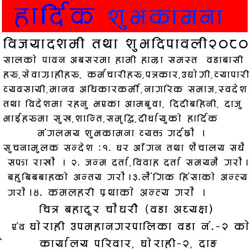 चाडपर्वलाई खुशीयालीका साथ मनाऔ ।